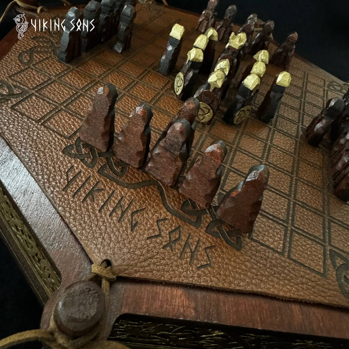 Hnefatafl, was in der altnordischen Sprache „Kรถnigstisch“ heiรt, ist ein rein strategisches, asymmetrisches Brettspiel, das von den Wikingern sowie von Vรถlkern in Skandinavien, Groรbritannien und Irland gespielt wurde. Obwohl die genauen Ursprรผnge des Spiels ungewiss sind, deuten archรคologische Funde darauf hin, dass es seinen Ursprung in der Wikingerzeit, speziell im 7. oder 8. Jahrhundert n. Chr., in Skandinavien und den von Wikingern eroberten Gebieten hat. Im Laufe der Zeit entwickelten sich zahlreiche Varianten von Hnefatafl, die zur Entstehung der umfangreichen „Tafl“-Spielgruppe fรผhrten. Diese umfasst fast alle Spiele, die auf der skandinavischen Halbinsel, in Dรคnemark, auf den Britischen Inseln und in Irland gespielt werden. Hnefatafl ist ein Spiel fรผr zwei Spieler, bei dem es um Mut und Strategie geht. Das Ziel ist es, entweder als Verteidiger den Jarl des Angreifers zu fangen oder als Angreifer den Jarl des Verteidigers. In beiden Fรคllen erfordert der Sieg sowohl strategisches Denken als auch taktisches Geschick.