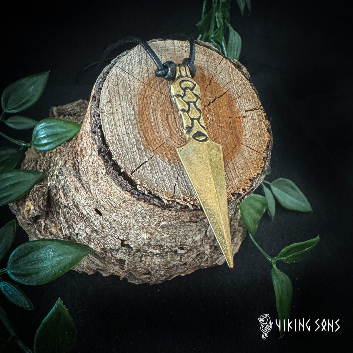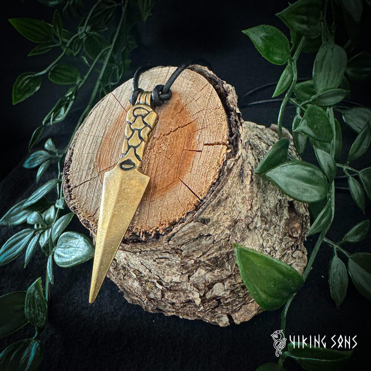 Der Anhänger, der Gungnir, Odins Speer repräsentiert, zeichnet sich durch einen kunstvoll gestalteten Schaft aus, der mit einem Muster aus verschlungenen Ringketten im Stil der Wikingerzeit verziert ist. In der nordischen Mythologie gilt Odin als der oberste Gott, und sein Speer Gungnir, eine von Zwergen zu Beginn der Zeit erschaffene mächtige Waffe, sollte gemäß der Legende niemals sein Ziel verfehlen. Dieser Anhänger symbolisiert nicht nur Kraft und Entschlossenheit, sondern verkörpert durch die Darstellung der Speerspitze auch Zielstrebigkeit und Präzision.