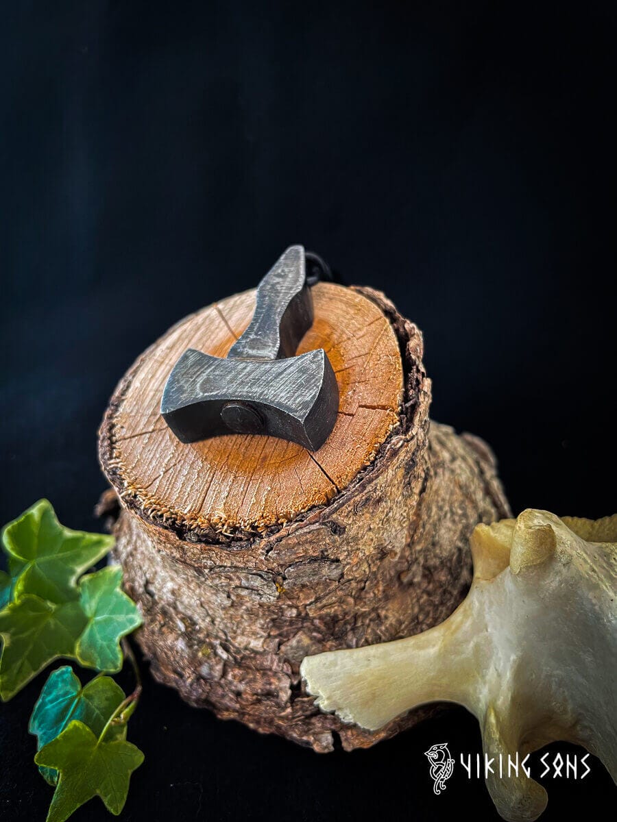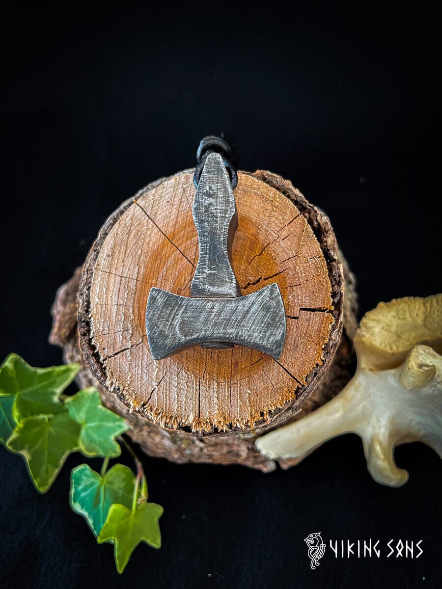 Dieser kraftvoll geschmiedete Mjölnir von Läby hat die Maße 3,5 x 3 x 1 cm und kann mit dem beiliegenden Lederband als Anhänger oder Amulett um den Hals getragen werden.