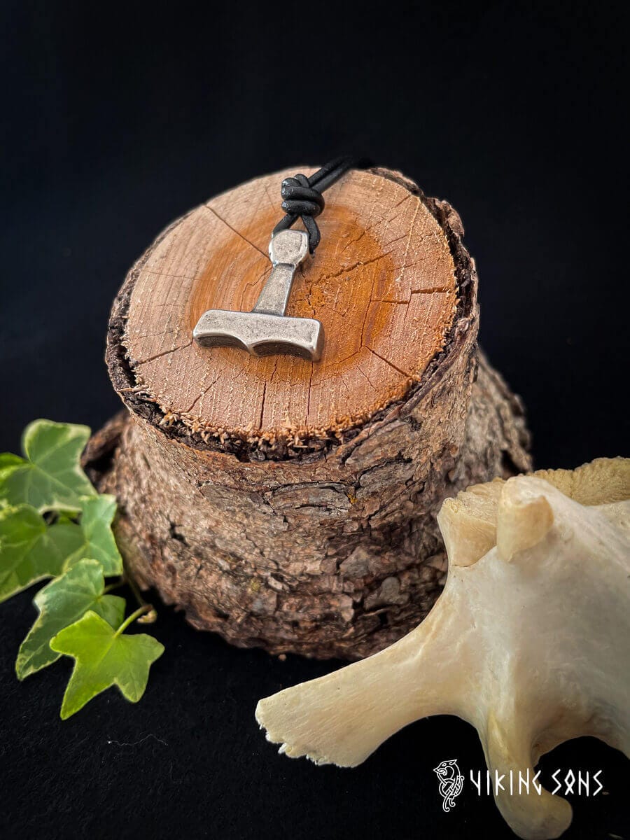Dieser Thorshammer ist eine Replik aus einem Fund in Sejro in Dänemark. Das gefundene Stück konnte auf Mitte des 9. Jahrhunderts datiert werden. Mit dem Thorshammer zusammen ist einer der größten Silberfunde überhaupt gehoben worden. Neben Hacksilber, Schmuckgegenstände wie Hals- und Armringe, Anhänger, und darunter eben das original dieses Thorshammer, sowie 143 Münzen arabischer und westeuropäischer Herkunft.